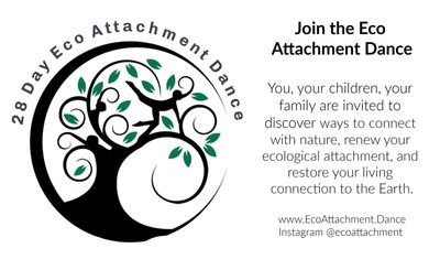 Take up the Eco Attachment Dance to expand your own ecological attachment. Each day for 28 days the Eco Attachment Dance cards prompt and activity for you to practice that day. Each activity takes about 5 minutes (though you can go longer).