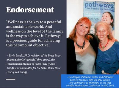 Her work is also endorsed by Ervin Laszlo, PhD, author of Quantum Shift in the Global Brain, who said, “Wellness is the key to a peaceful and sustainable world. And wellness on the level of the family is the way to achieve it. Pathways and Pathways Connect is a precious guide for achieving this paramount objective.” Laszlo received the Goi Award, the Japan Peace Prize in 2001, the Assisi Mandir of Peace Prize in 2006, and was nominated for the Nobel Peace Prize in 2004 and 2005.